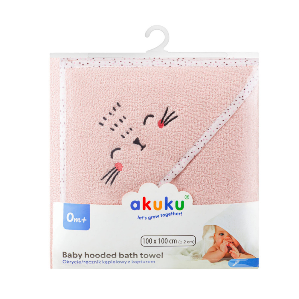 AKUKU A0664 -  Kapucnis Babatörölköző 100 x 100cm Rózsaszín
