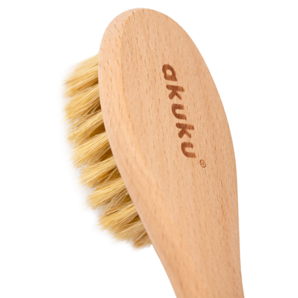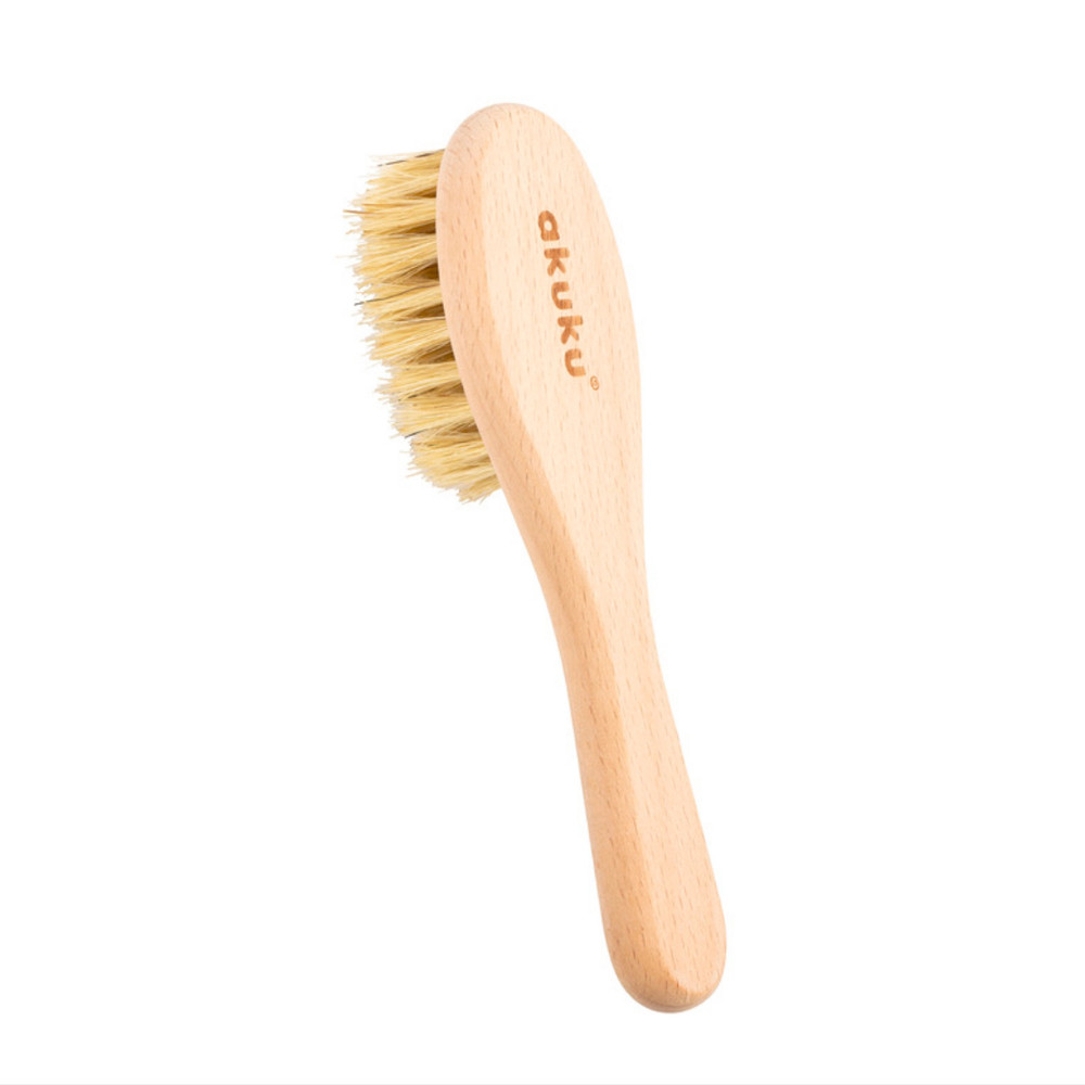• Természetes sörtéjű kefénk tökéletes a mindennapi ápoláshoz , különösen a koszmó eltávolításához , amely a legtöbb babánál az élet első és negyedik hónapja között alakul ki. A legjobb eredmény elérése érdekében használja babaolajjal – egyszerűen vigyen fel olajat a baba fejére fürdetés előtt, majd kefélje ki a pikkelyeket.