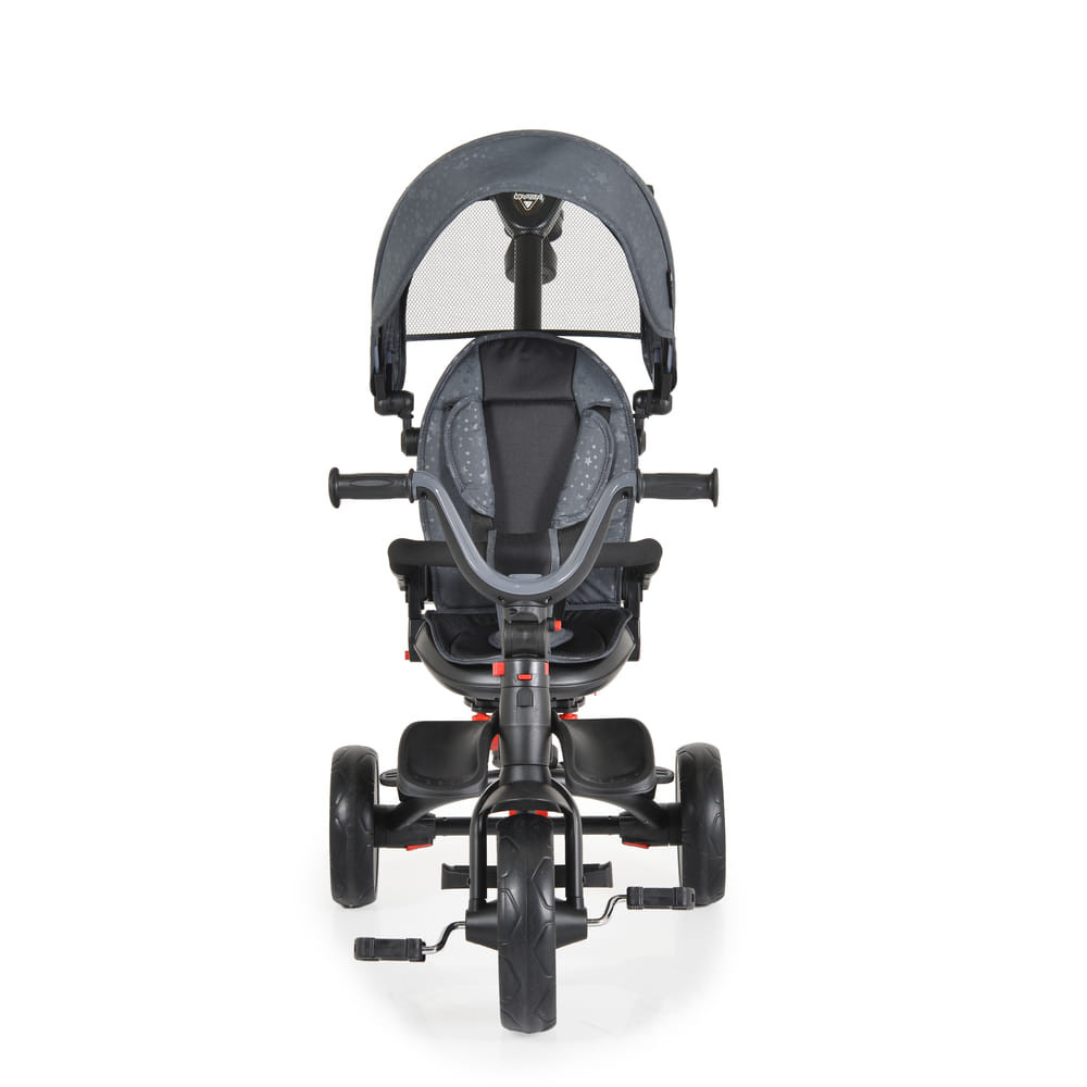 br />-1 és fél éves kor feletti gyermekeknek, akiknek a maximális súlya legfeljebb 25 kg. Használható kupola, szülői irányító fogantyú és biztonsági deszka nélkül. Összecsukható hátsó váz. Összecsukható kormány. Ülés: 360 fokban forgatható; állítható háttámla. Szülői tolókar - állítható, irányítja a kerekek mozgását. Kerekek - EVA. Első kerék kuplunggal a szabadonfutó funkcióhoz. Puha biztonsági rúd. Levehető ülőpárna és 3 pontos biztonsági öv. Egy hátsó fék, amely mindkét hátsó keréket blokkolhatja. Pohártartó. Játéktáska.