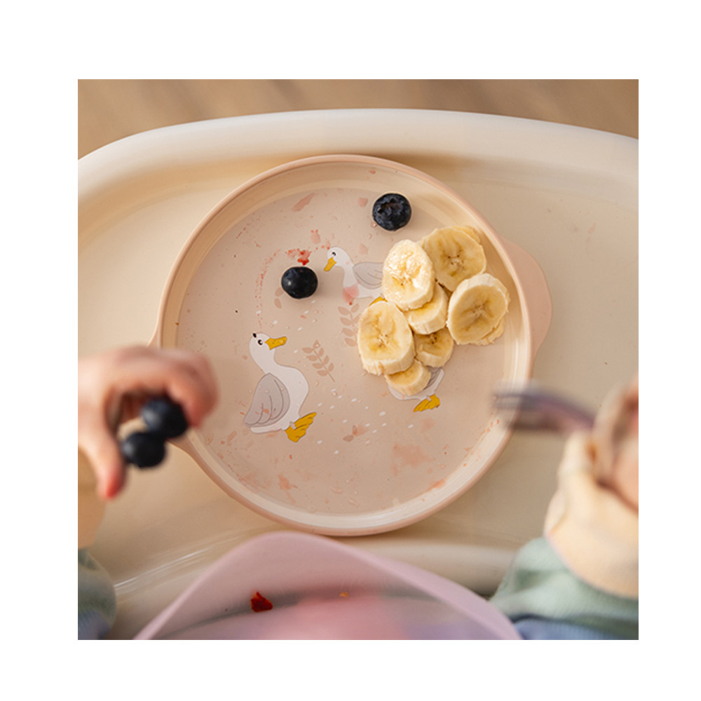 A tányérok lekerekített formái tökéletesen illeszkednek a kis kezekhez, és biztonságosak a gyermekek érzékeny szájának és ínyének.