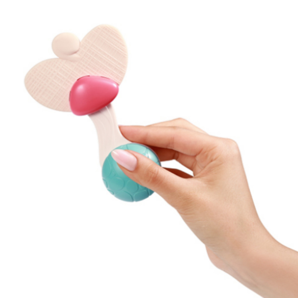A csörgő rázogatása halk hangokat ad ki, amelyek felkeltik a baba figyelmét és fejlesztik a hallását. Ezenkívül, amikor elforgatod, egy érdekes hangot hallasz, amely felkelti a kíváncsiságát és játékra ösztönzi.