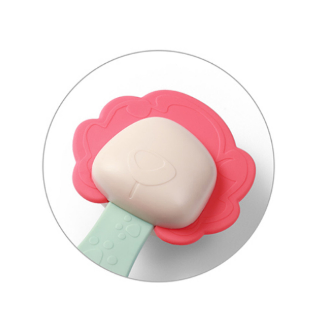 A kellemes tapintású szilikon rágóka gyengéden masszírozza a baba ínyét, és segít enyhíteni a fogzási fájdalmat.