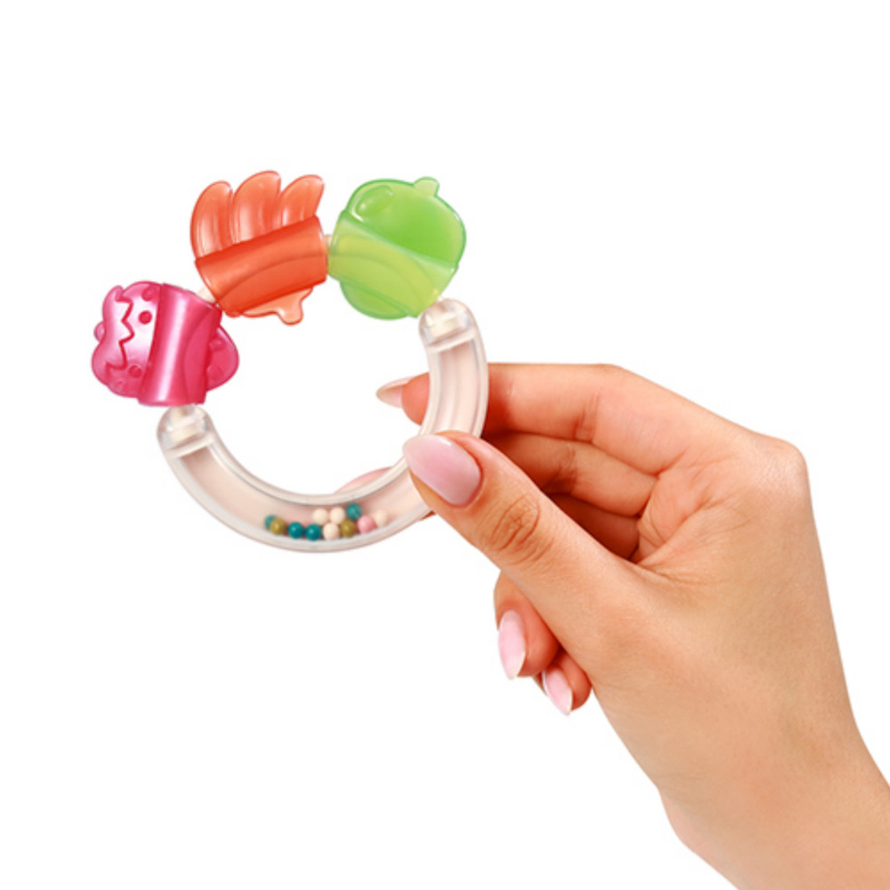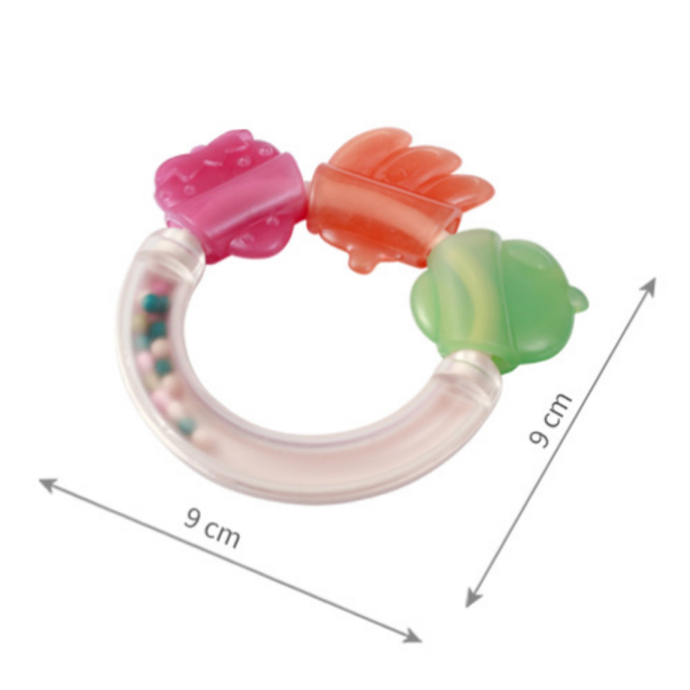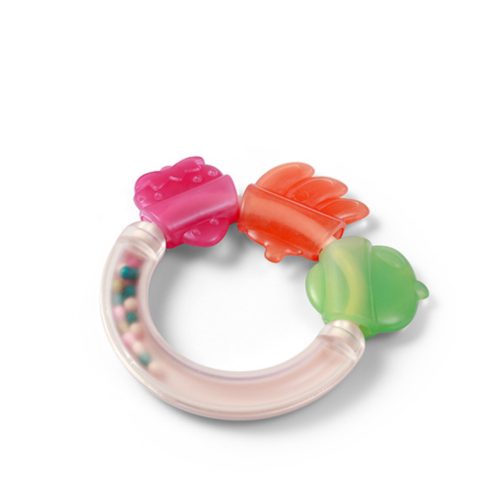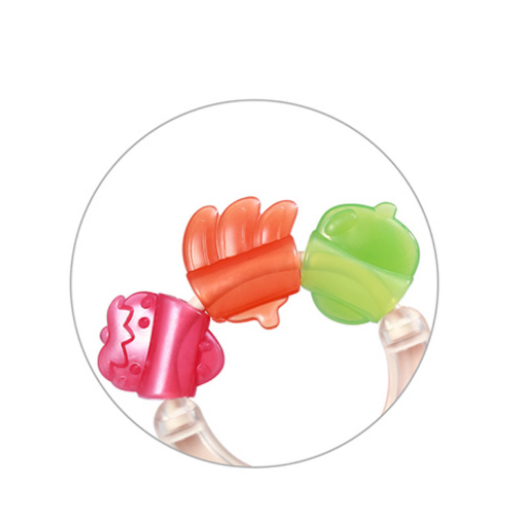 A kellemes tapintású szilikon rágóka gyengéden masszírozza a baba ínyét, és segít enyhíteni a fogzási fájdalmat.