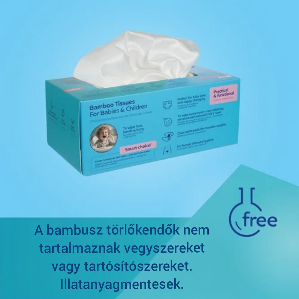 • A 18x18 cm-es bambusz törlőkendők tökéletesek a kicsik arcának, kezének és testének áttörlésére, vagy orrfolyás esetén az orr áttörlésére is, anélkül, hogy irritálnák az orr körüli finom bőrt.