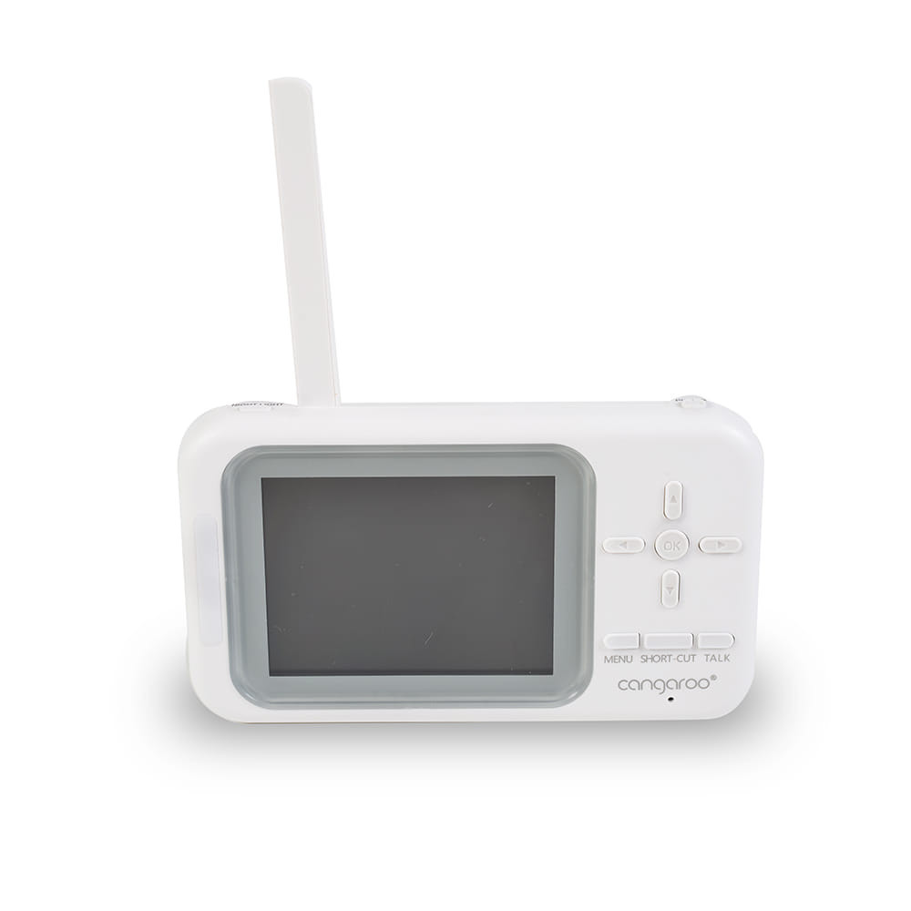 • A FOCUS videos babamonitor tökéletes választás a szülőknek és gondozóknak, akik a lehető legnagyobb biztonságban szeretnék tudni a kisbabát. Ez a CANGAROO Video Baby Monitor Focus egy 2,4 GHz-es monitorral rendelkezik, amelynek 3,5"-os színes LCD kijelzője (320*240 pixel) képes a szobában történő minden apró mozdulatot rögzíteni. A monitor hatótávolsága kb. 300 méter, így a baba akkor is szemmel tartható, ha éppen másik szobában vagy a kertben tartózkodunk. A szülői egységről állítható a kamera szöge, így mindig a legjobb betekintést biztosítja a babaágyra vagy járókára. Ez a babamonitor nem csak praktikus, hanem rendkívül könnyen használható is, így a nagymamának vagy bébiszitternek sem okoz gondot a kezelése.