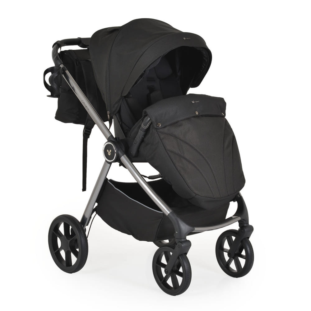 A készlet tartalmaz egy alvázat, ülést, mózes kosarat, autósülést, lábvédőt, tartozéktáskát, esővédőt és adaptereket.