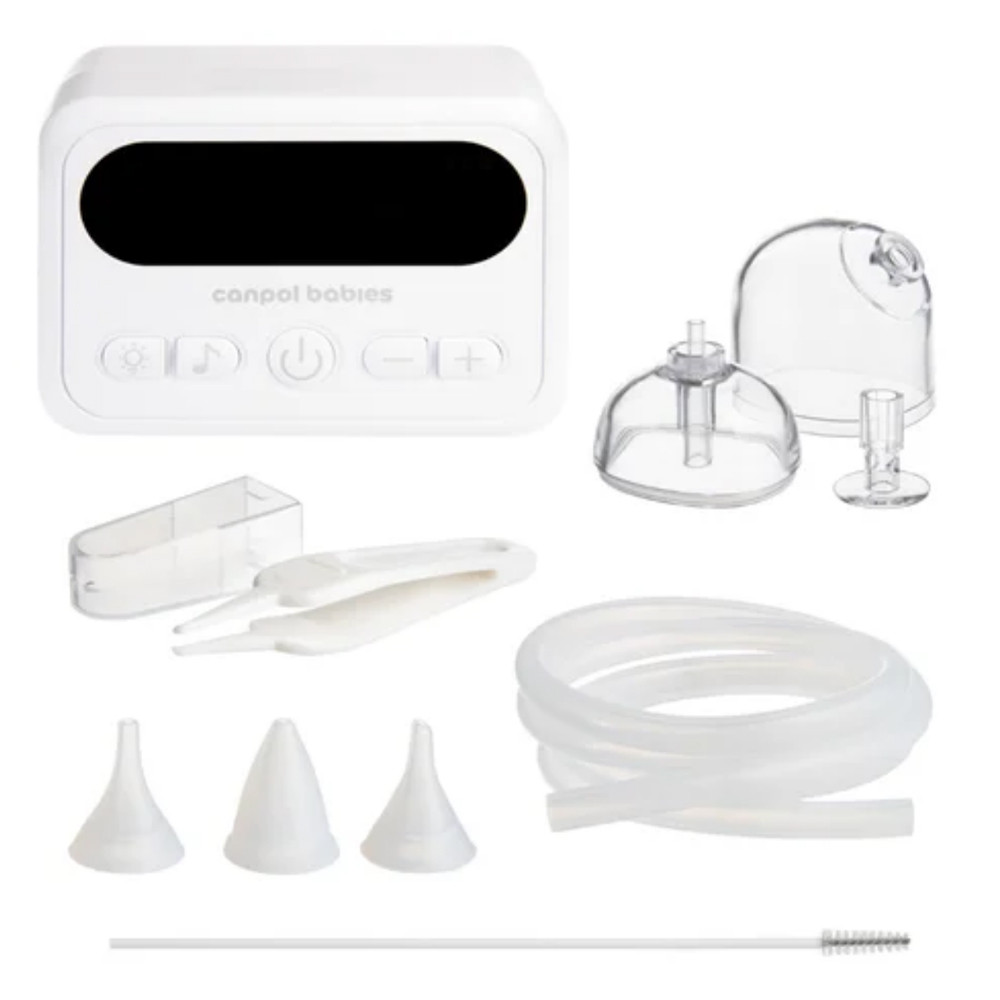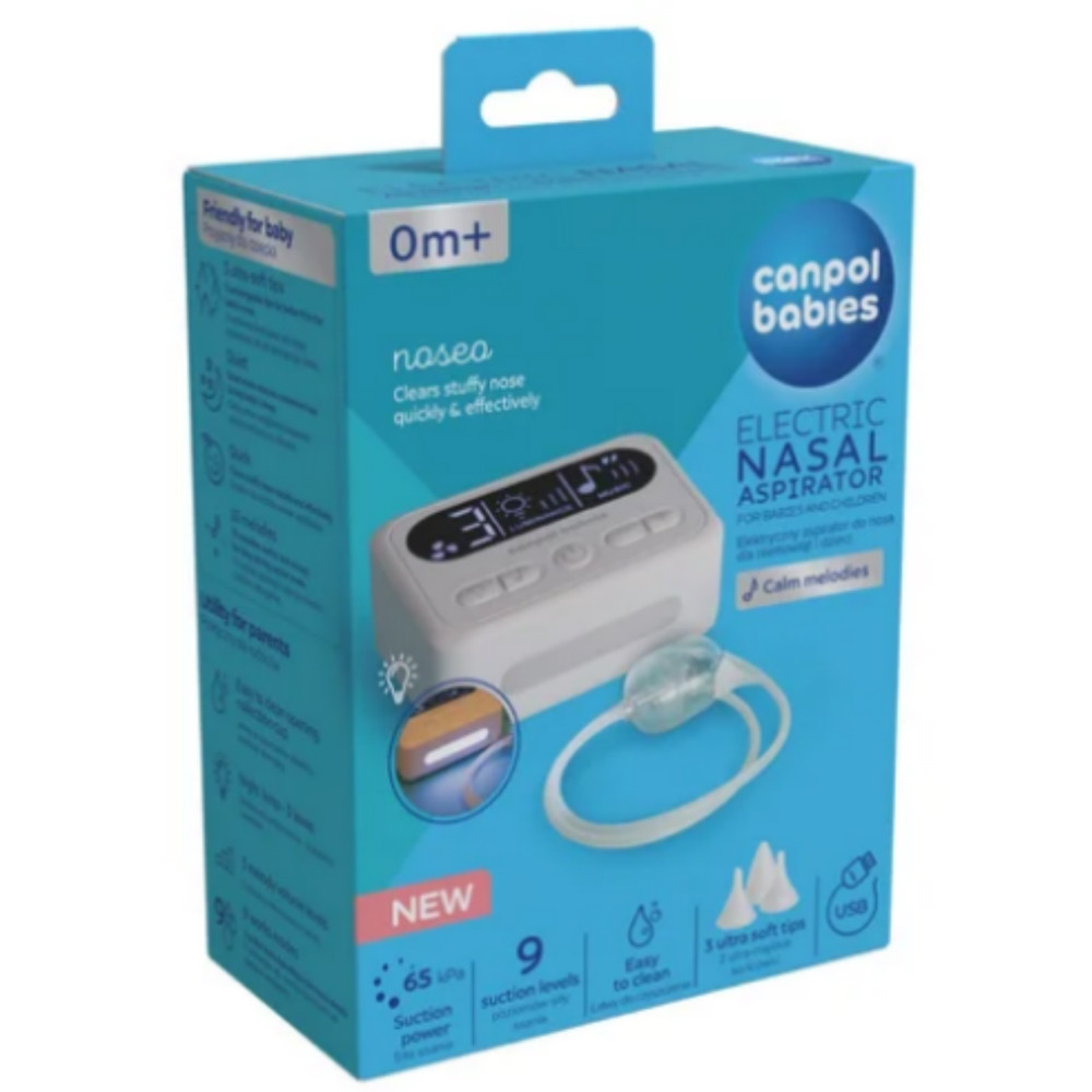3 puha, cserélhető fej a baba orrához való jobb illeszkedésért. Csendes működés biztosítja a használatot alvás közben is, míg 10 dallam nyugtatja és leköti a babát orrszívás közben.