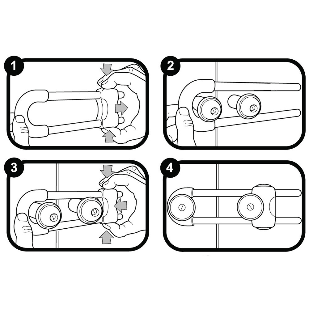 A szekrény ajtók gombjaira helyezve, ezeket összefogja, a gyermek nem tudja az ajtókat kinyitni, ezáltal elkerülhető, hogy a kicsi az ujjait odacsukja, becsípje.