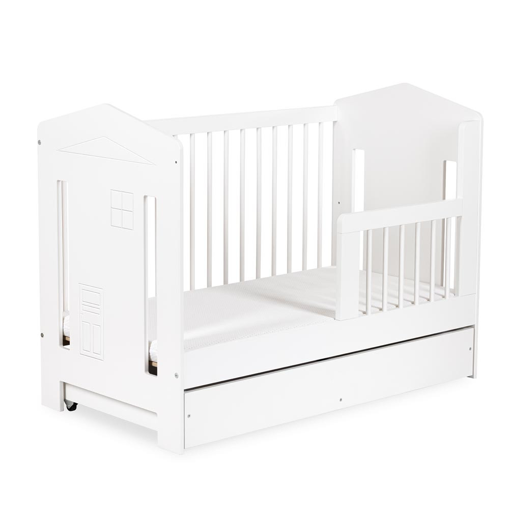 Az IDA babaágy MDF-ből és fából készült, és úgy készült, hogy biztosítsa a gyermek biztonságát alvás közben, valamint a szülők nyugalmát. A festett MDF lapból készült oromzaton lévő házminta minden gyermeket érdekelni fog.