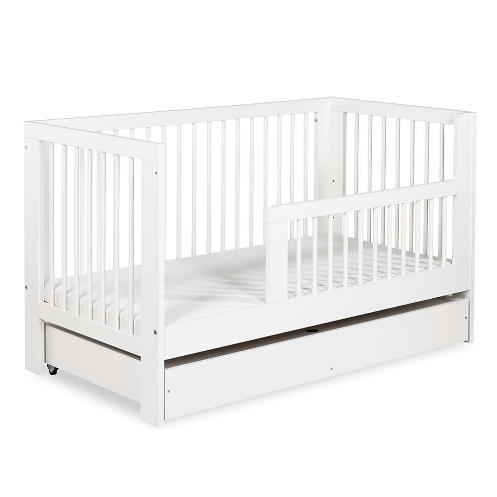 A 140×70 cm-es fehér OLIVIA ágy ötvözi a funkcionalitást, a biztonságot és az esztétikát. Csecsemők és idősebb gyermekek számára egyaránt alkalmas. A mellékelt korlátnak köszönhetően a kiságy könnyen ággyá alakítható, így a gyermekkel együtt nő. Ez egy kiváló megoldás, amely lehetővé teszi a bútorok hosszabb ideig tartó használatát és helyet takarít meg a gyerekszobában. Az OLIVIA ágy kiváló minőségű anyagokból készült, amelyek biztonságosak a gyermekek egészségére nézve. A sima felület, a lekerekített élek és a masszív konstrukció maximális biztonságot nyújt alvás és játék közben. A fehér színnek köszönhetően az ágy tökéletesen illeszkedik különféle belsőépítészeti stílusokba, frissességet és könnyedséget kölcsönözve.