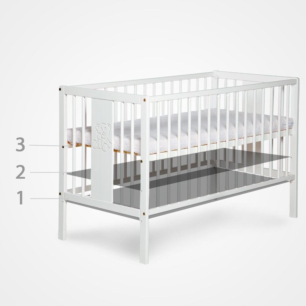 Újszülött kortól 8 éves korig használható,Anyaga: bútorlap,kanapé funkcióKivehető rácsokkal,Fekvőfelülete 3 szinten állítható