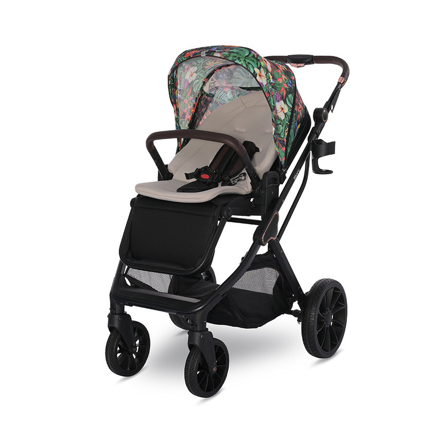 A hatalmas méretûre bõvíthetõ kupolába épített hálós rész nyáron megvédi a gyermeket a napsütéstõl, és kellõ szellõzést biztosít. Fokozatmentesen, majdnem vízszintesig dönthetõ háttámlája kényelmes alvást nyújt séta közben is.
