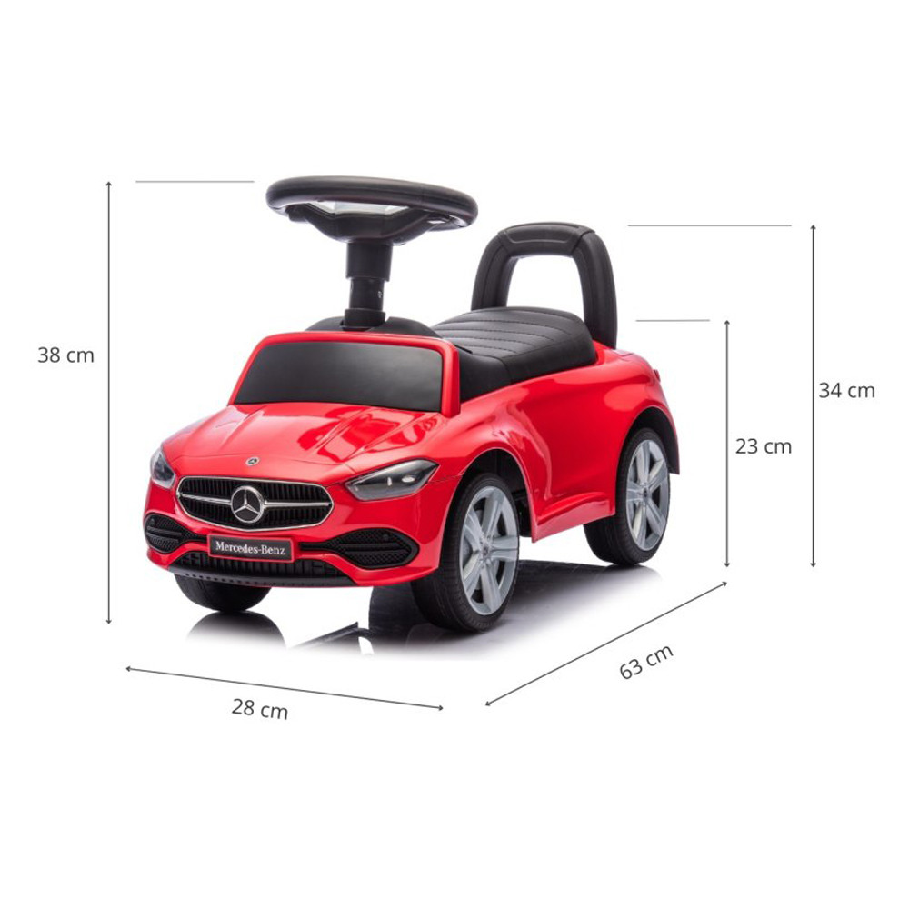 Gyermek bébitaxi Mercedes Benz AMG C63 Coupe nagy hangsúlyt fektet a felhasznált anyagok minden részletére és minőségére. Sportos megjelenése nemcsak minden gyermek, de a szülők figyelmét is felkelti. A futóbicikli segíti a gyermek motorikus képességeinek fejlesztését, és sok szórakozást biztosít számára. A kormánykerék dudát és két dallam gombot tartalmaz. A futóbicikli kényelmes, széles üléssel, tárolóhellyel, kormánykerékkel, minőségi műanyag kerekekkel van ellátva.