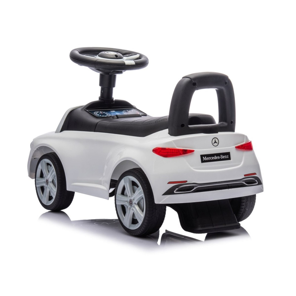 Gyermek bébitaxi Mercedes Benz AMG C63 Coupe nagy hangsúlyt fektet a felhasznált anyagok minden részletére és minőségére. Sportos megjelenése nemcsak minden gyermek, de a szülők figyelmét is felkelti. A futóbicikli segíti a gyermek motorikus képességeinek fejlesztését, és sok szórakozást biztosít számára. A kormánykerék dudát és két dallam gombot tartalmaz. A futóbicikli kényelmes, széles üléssel, tárolóhellyel, kormánykerékkel, minőségi műanyag kerekekkel van ellátva.