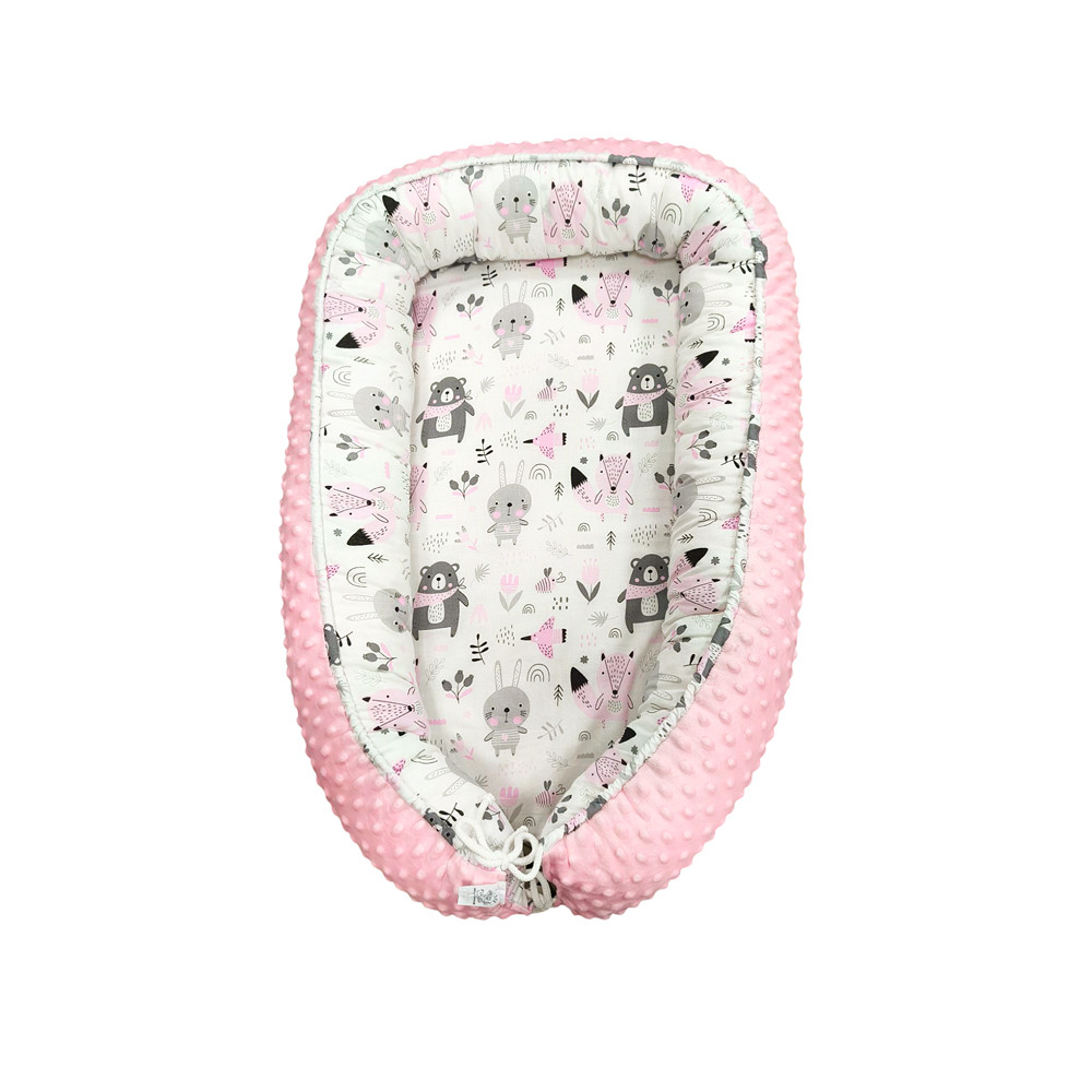 Minky Babafészek - Erdei Állatok Rózsaszín