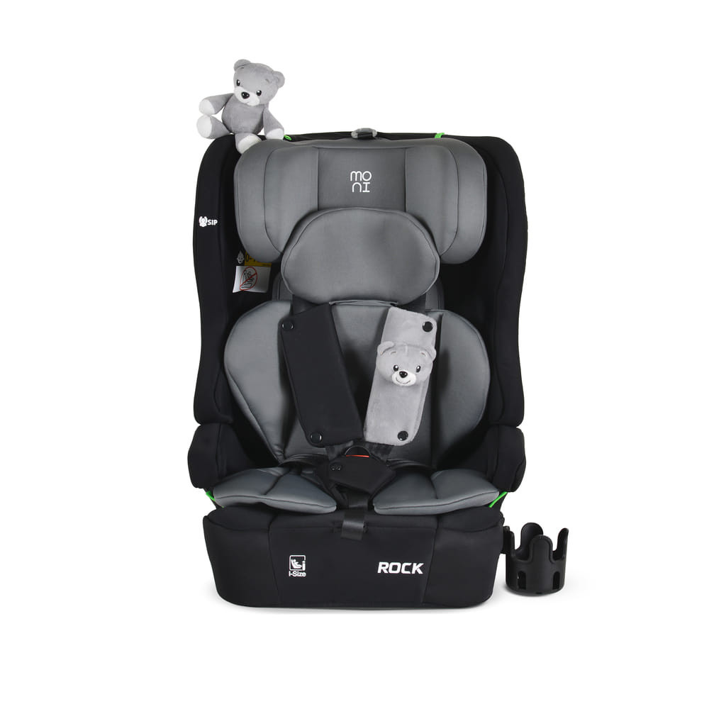 Moni - ROCK autós ülés 76-150cm, 2játékkal, pohártartó, belső öv, isofix nélkül SZÜRKE