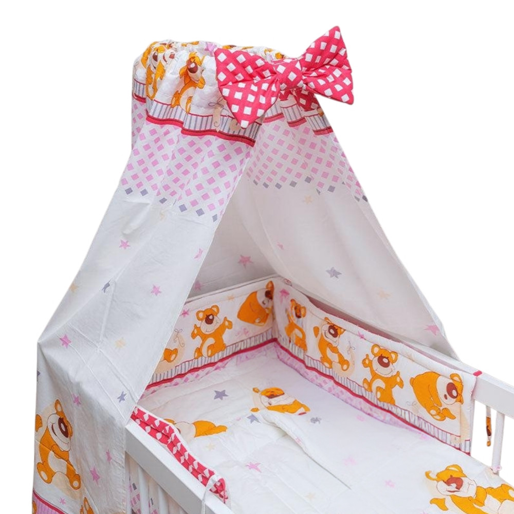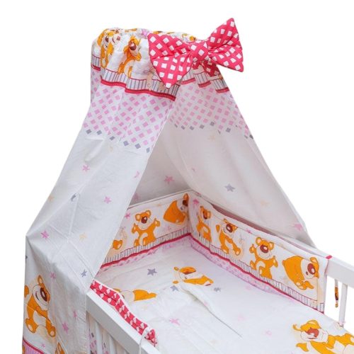 Négy részes (takaró + párna + fejvédő + baldachin függöny) mosható ágynemű szett.