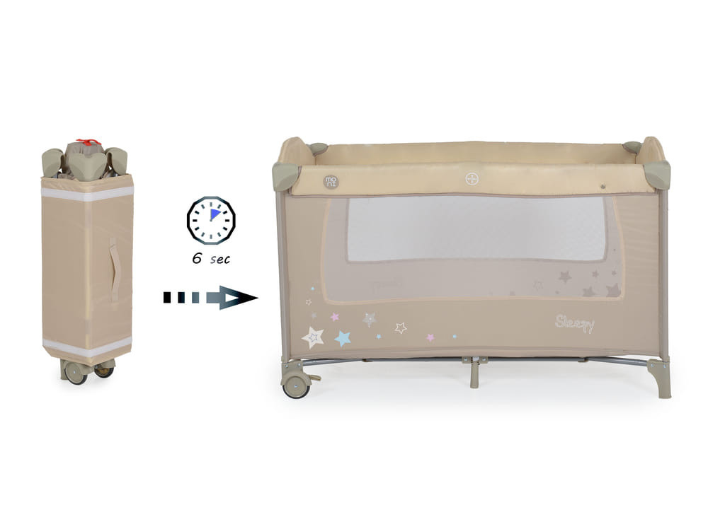 Moni - Sleepy összecsukható luxus babaágy 2 szint+pelenkázó+ játék bézs