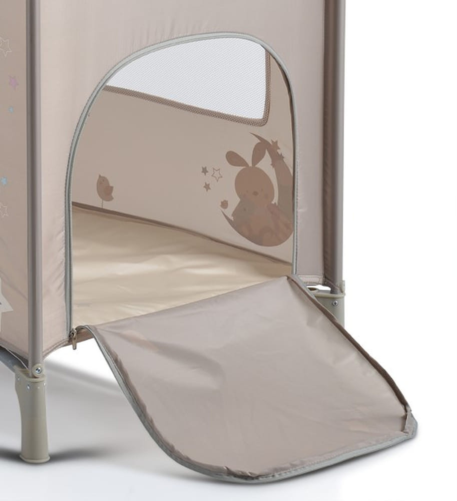 A SLEEPY Összecsukható luxus babaágy 2 szinttel, bézs színben igazi multifunkcionális megoldás kicsik és nagyok számára. Nem csak egy egyszerű babaágy, hanem játszósarok is egyben, melyben biztonságosan tud játszani a kicsi. A második emeletnek köszönhetően a legkisebb babák is biztonságban és kényelmesen tudnak pihenni, míg a nagyobbak számára tökéletes játszóteret biztosít. A játékrúd és a pelenkázólap extra kényelmet és szórakozást nyújt. A SLEEPY babaágy gondos tervezésének köszönhetően mindent megad, amire egy baba és a szülőknek is szükségük lehet 0+ hónapstól egészen 15 kg-ig. Az ágy könnyedén összecsukható, így utazások alkalmával is könnyen magunkkal vihetjük.>
