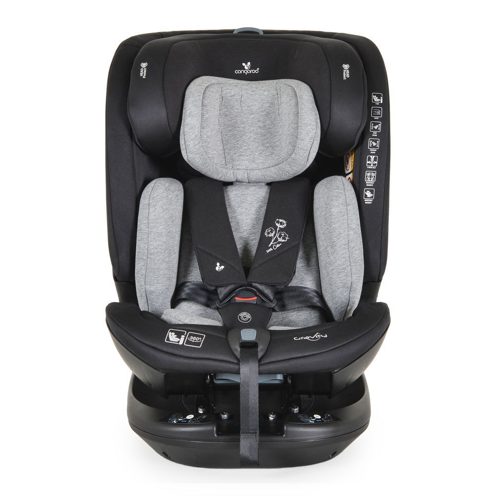 Cangaroo - GRAVITY I-size autós ülés 40-150cm, SPS, forgatható talp, pamut huzat SZÜRKE